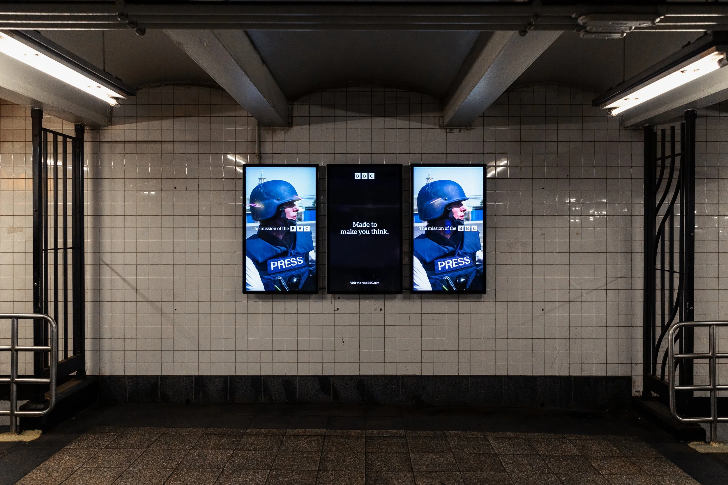 I wrote the creative platform and tagline, Made to Make You Think, which defines the BBC’s role as encouraging their audience to stay open to new perspectives. I also helped concept the scripts and the three-block visual system, which became the hero look-and-feel for the campaign. The campaign launched in 2024 through high-profile OOH and TVC, with plans for more in the future.